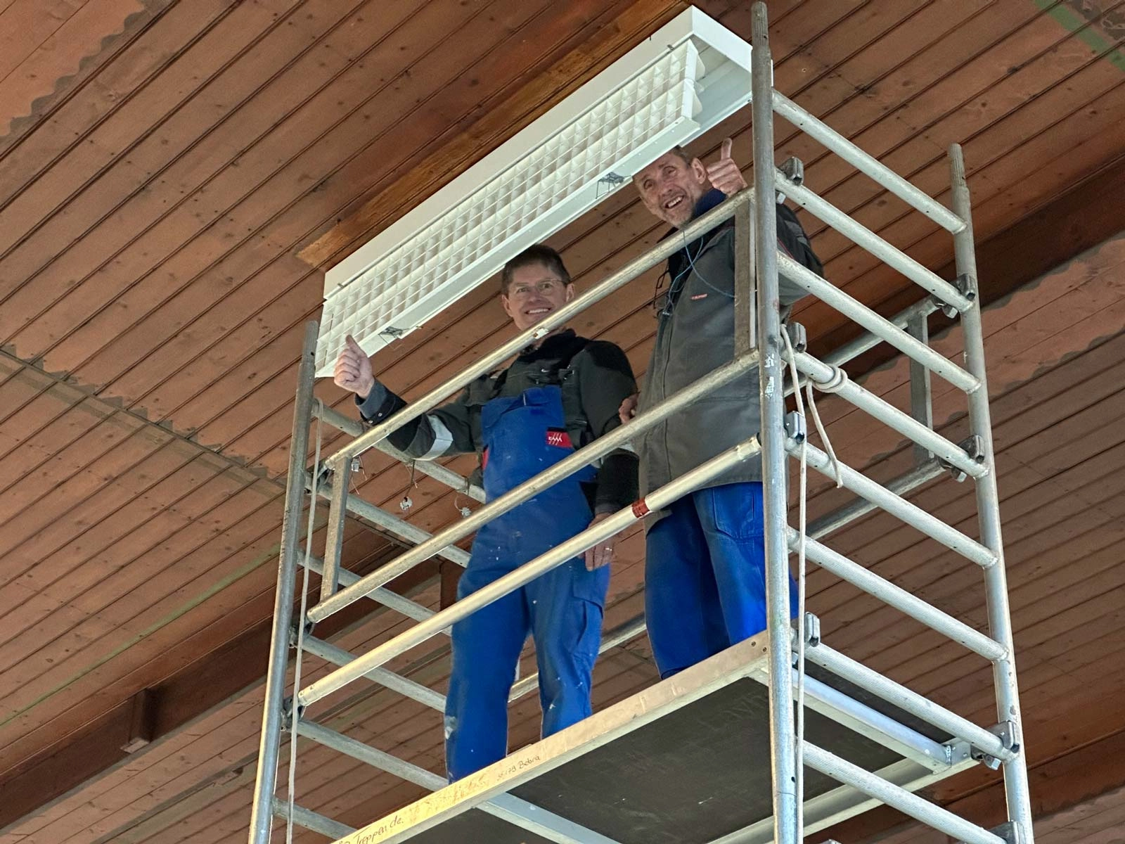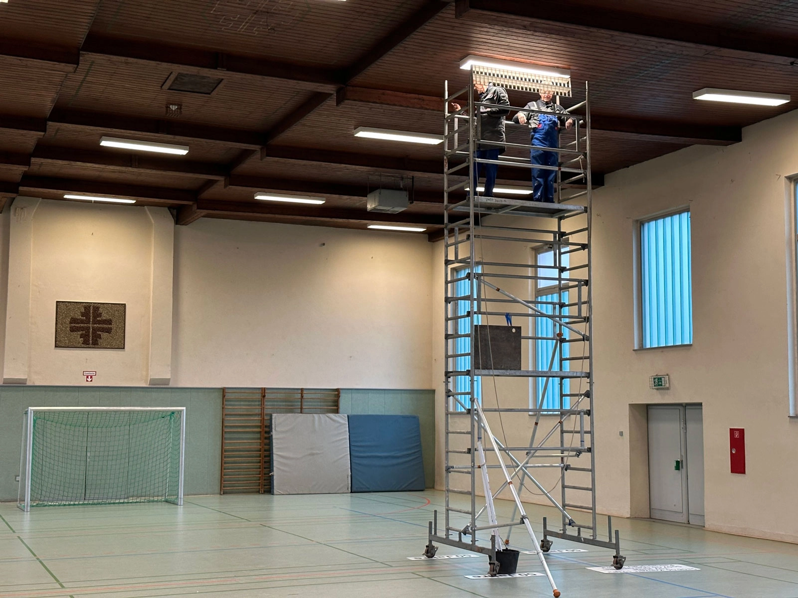 Der TSV Bebra hat die zurückliegende Weihnachtspause des Sportbetriebes in der vereinseigenen Halle genutzt um rund 60 energiehungrige Neon-Röhren auf moderne, energiesparende LED-Technik umzurüsten.