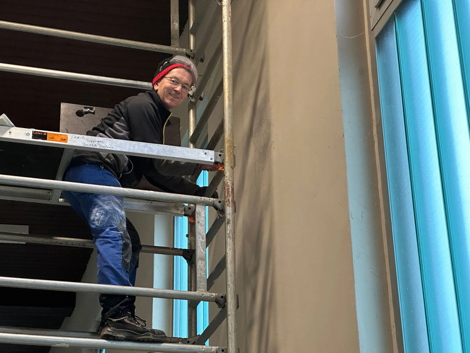 Unter seiner fachmännischen Leitung hat er mit den Vereinsmitgliedern Thomas Trispel, Hans-Gerd Ellrich, Ernst Killmer und Dirk Brill zwischen den Jahren die gesamte Hallenbeleuchtung auf energieeffizeiente LED-Technik umgerüstet. Dabei war in der fast 6 Meter hohen Halle Schwindelfreiheit gefordert. Das dafür erforderliche fahrbare Gerüst wurde von der Firma Vario Treppen und dem Einrichtungshaus Röse kostenfrei zur Verfügung gestellt.