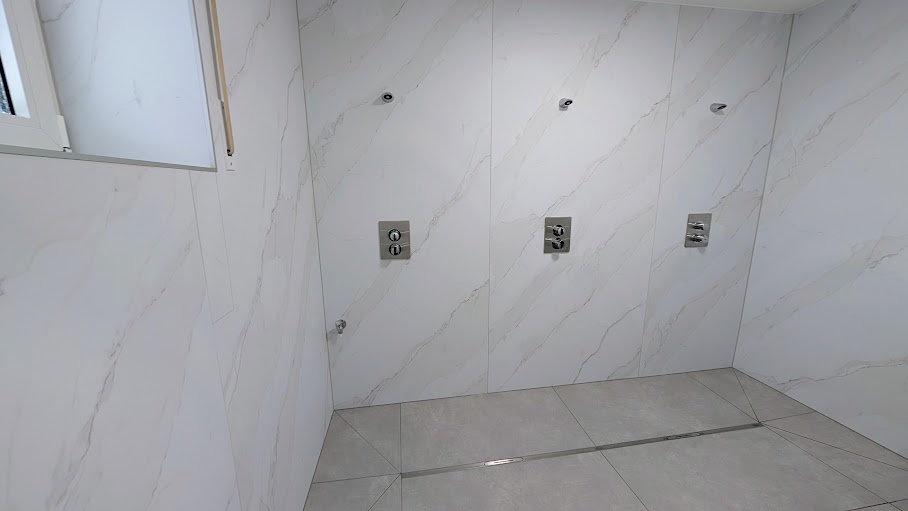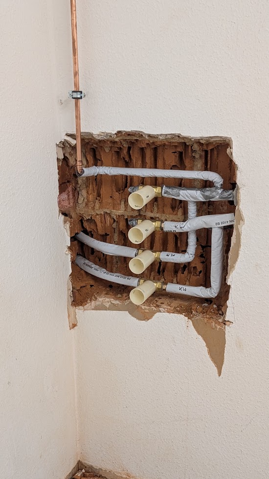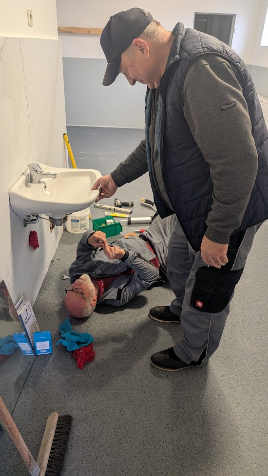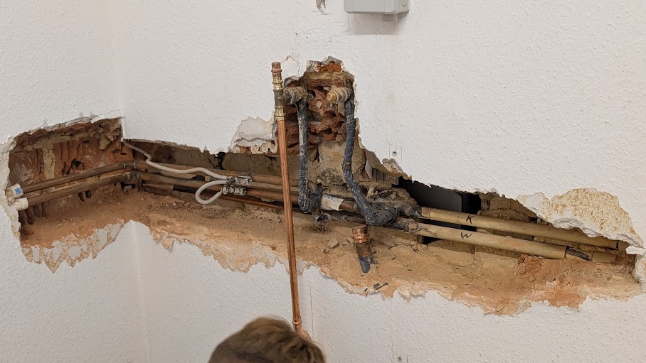 Vorarbeiten in den Duschen für neue Armaturen.