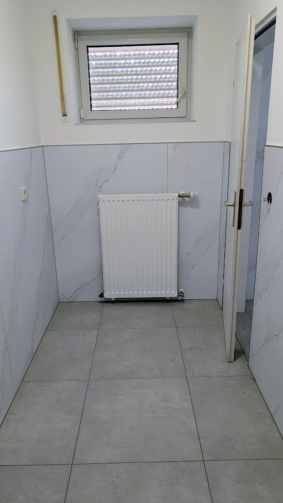Auch in den Duschvorräumen wurden die Fliesen entfernt!