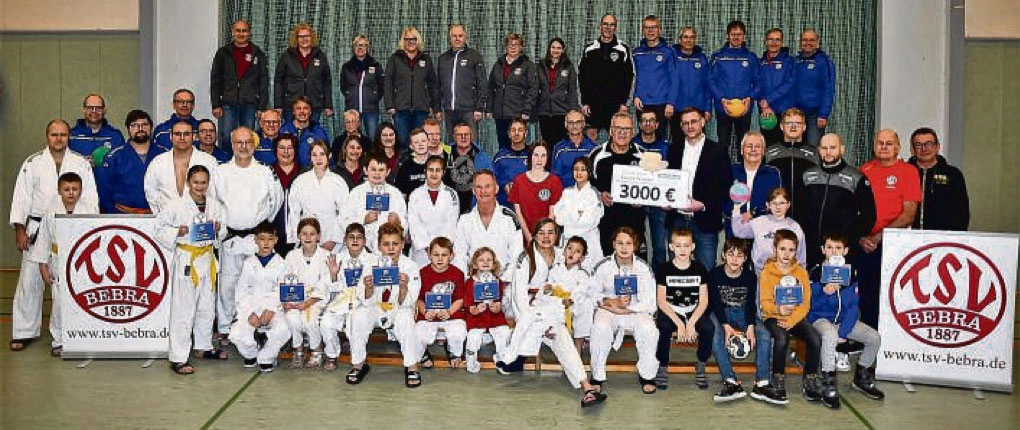 So kann es weitergehen, mag sich TSV-Vorstandsmitglied Günther Kinscher gedacht haben, als er in Anwesenheit von Sportlern aus allen Abteilungen des größten Bebraer Vereins in der TSV-Halle aus der Hand von Meik Schweda, des Vor-Ort-Filialleiters der Sparda-Bank Hessen eG, symbolisch 3.000 Euro entgegen nahmen.