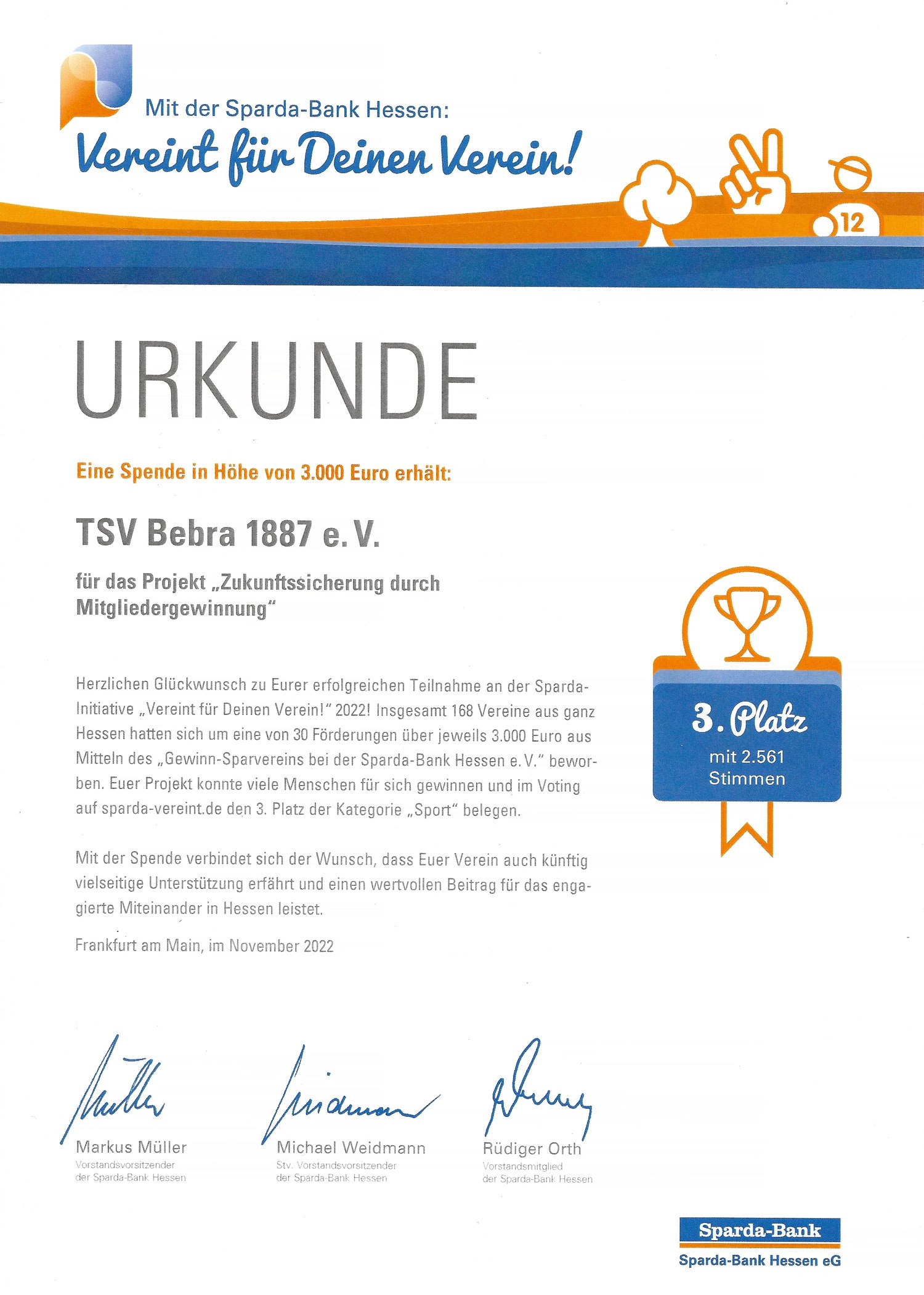 Der Vorstand bedankt sich bei allen Mitgliedern, Freunden und Gönnern die für den TSV gestimmt haben.